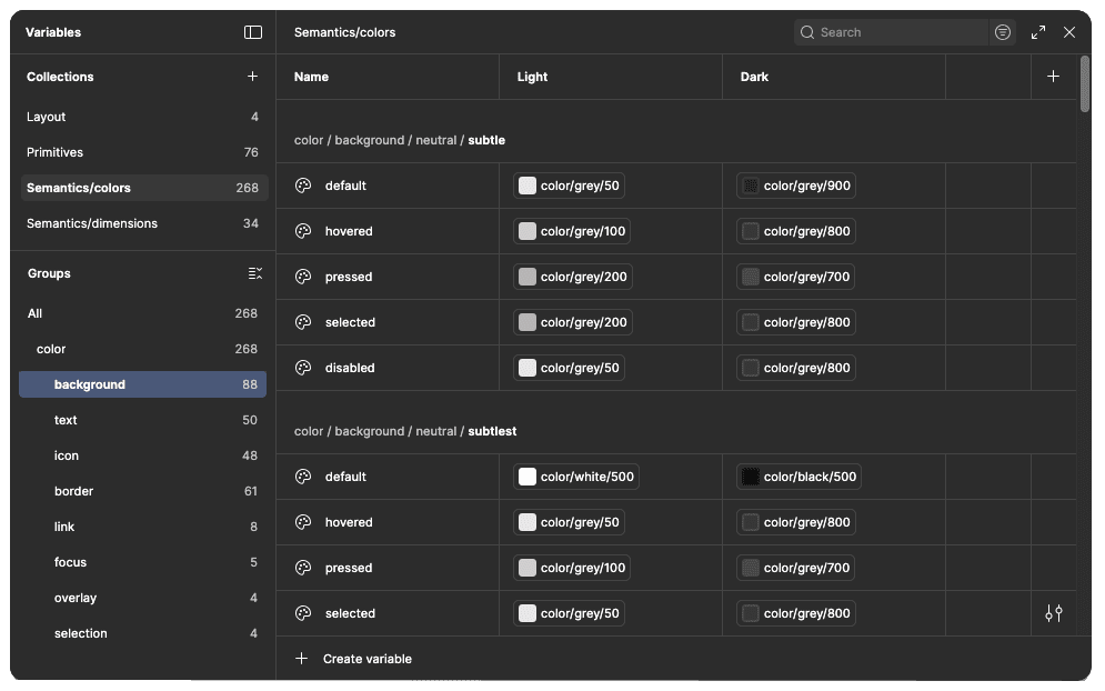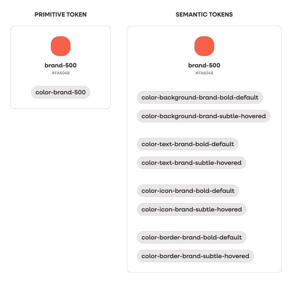 Primitive and semantic tokens were defined early to establish a clear separation between raw values and contextual usage.