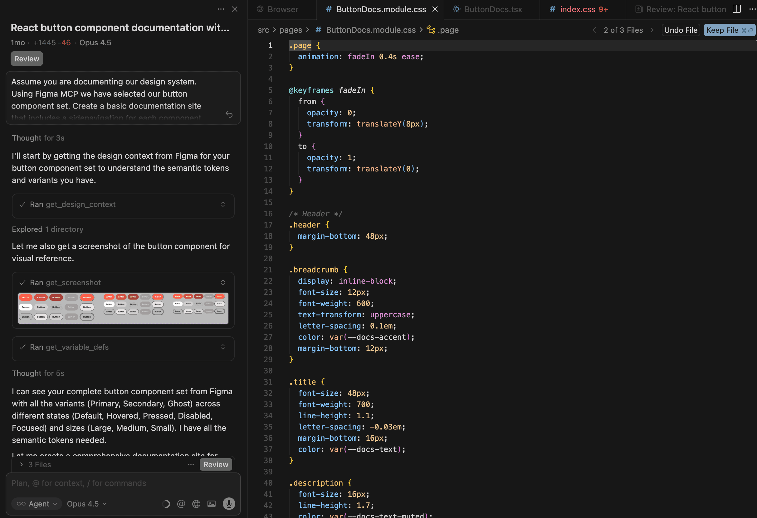 Cursor was used to assist in generating and updating structured documentation based on the Figma components.