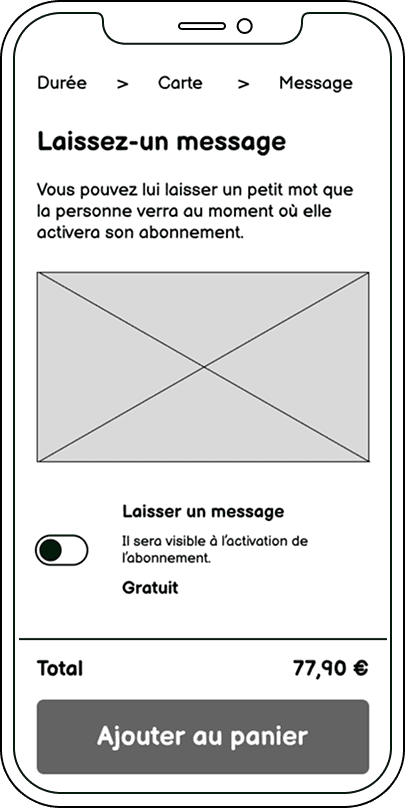 After these first drafts, I quickly moved on to black-and-white wireframes and shared them with the team for validation before moving forward.