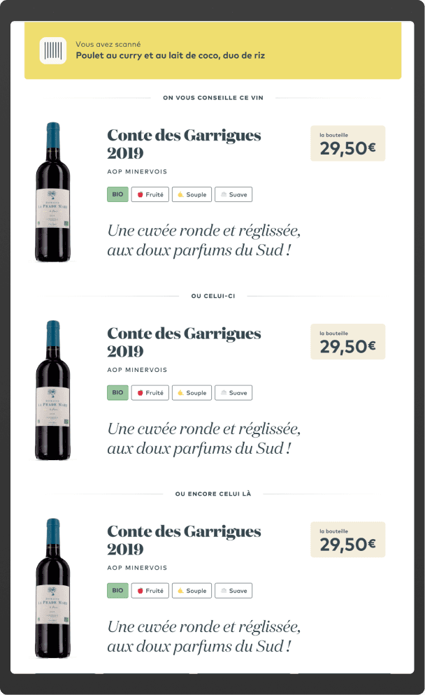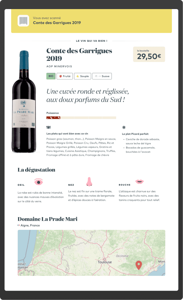 A partnership with a famous French food store chain led me to work on a touchscreen app to guide everyday shoppers and help them to choose a bottle without staff guidance.