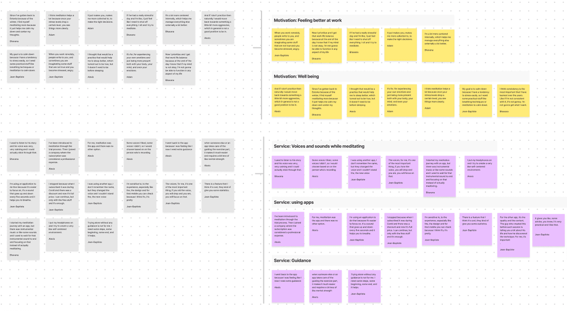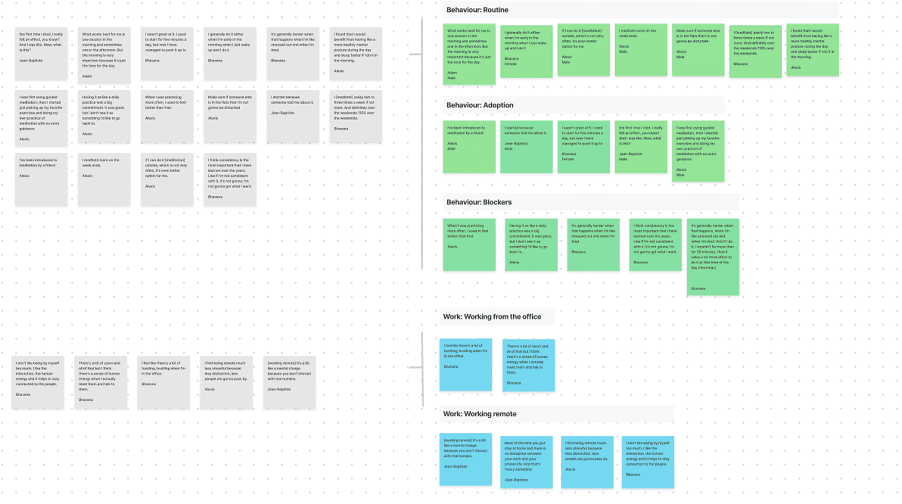 To analyze user feedback from a specific research, I import the data into FigJam to build affinity maps, grouping similar insights to identify patterns.