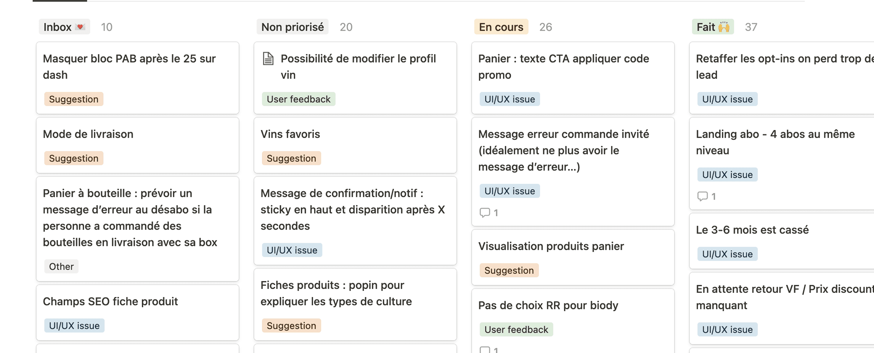 I set up two complementary tools: a Notion dashboard and affinity mapping when I need to dive deeper.